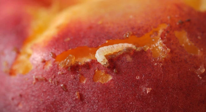 La polilla del bacalao (Cydia pomonella) es una de las plagas más graves que afectan a las frutas de pepita. Es muy adaptable a diversas condiciones climáticas y ambientes. Se ha descrito resistencia a varios insecticidas químicos. Por lo tanto, se requieren estrategias alternativas para controlar con éxito esta plaga. Las larvas mastican su camino hacia las frutas, normalmente entrando por el extremo de la flor, el extremo del pedúnculo o en los puntos de contacto entre las frutas. Su túnel en espiral conduce finalmente hacia el corazón y es a menudo una fuente de infecciones secundarias. Polilla oriental de la fruta (Grapholita molesta) es una plaga grave de importancia económica para los huertos comerciales de melocotones, nectarinas y albaricoques. Con frecuencia migra a los huertos de frutales de pepita al final de la temporada, donde puede causar daños sustanciales en la fruta antes de la cosecha. Estudios recientes han confirmado que la polilla oriental de la fruta también es capaz de completar todo su ciclo vital en hospedadores alternativos como manzanos, cerezos, ciruelos y membrillos. Las larvas de primera y segunda generación perforan las puntas de los árboles frutales provocando la muerte, la distorsión y el marchitamiento de los brotes. En respuesta al endurecimiento de los brotes, la alimentación de los frutos aumenta drásticamente en las generaciones siguientes.